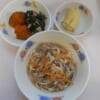 本日の給食は… *醤油ラーメン <生中華麺・豚もも肉・豚バラ肉・ほうれん草・きゃべつ・もやし・にんじん・かまぼこ・ねぎ・ごま油・鳥がらだし汁・かつお昆布だし汁・中華だしの素・しょうゆ・塩> *小松菜のごま和え <小松菜・にんじん・しめじ・さとう・しょうゆ・塩・すりごま> *やきいも <さつまいも> *りんご 本日のごっくん期の離乳食は… ○つぶしうどん ○ほうれん草 ○さつまいも ○高野豆腐 ○スープ 本日のかみかみ期の離乳食は… ○和風うどん <うどん・豚もも肉・豚バラ肉・きゃべつ・にんじん・鶏がらだし ...