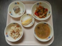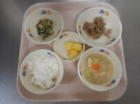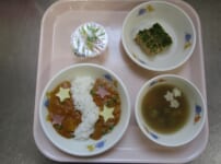 本日の給食は・・・ *ごはん *七夕カレー 〈豚肉・玉ねぎ・人参・じゃがいも・グリンピース・油・バター・牛乳・ スキムミルク・ケチャップ・ソース・カレールウ・ハム・チーズ〉 *松風焼き 〈豚ひき肉・鶏挽肉・人参・玉ねぎ・しょうが・みりん・みそ・しょうゆ・パン粉・油・青のり〉 *すまし汁(コーン・オクラ・かまぼこ・麩) *七夕ゼリー 本日のおやつは・・・ ◆牛乳 ◆ぎょうざの皮チップス 〈ぎょうざの皮・しらす・マヨドレ・青のり〉 本日のカミカミ期離乳食は・・・ ■軟飯 ■野菜シチュー 〈豚ひき肉・玉ねぎ・ ...