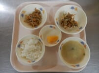 本日の給食は… *ごはん *しらすと干しエビのかき揚げ <しらす・玉ねぎ・人参・干しえび・しそ・米粉・片栗粉・昆布茶・塩・油> *きんぴらごぼう <ごぼう・人参・豚肉・ごま油・三温糖・醤油・みりん・酒・ごま> *みそ汁(椎茸・キャベツ) *オレンジ 本日のおやつは… ◆牛乳 ◆納豆おろしパスタ <スパゲティ・ひきわり納豆・大根・ツナ・オリーブ油・醤油・三温糖・塩・酢・のり> 本日のかみかみ期の離乳食は… 〇軟飯 〇しらすのかき揚げ <しらす・玉ねぎ・人参・米粉・片栗粉・塩・油> 〇きんぴら人参 <人参・豚 ...