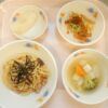 本日の給食は… *ごはん *酢豚 〈豚もも肉・片栗粉・玉ねぎ・人参・ピーマン・赤ピーマン・なたね油・ケチャップ・三温糖・醤油・酢・にんにく・中華だしの素・水・片栗粉・ごま油〉 *小松菜の塩ナムル 〈小松菜・もやし・人参・ごま油・塩・三温糖・中華だしの素・ガーリックパウダー〉 *豆腐の中華スープ 〈絹ごし豆腐・鶏むね肉・ブロッコリー・ねぎ・ごま油・中華だしの素・塩〉 *りんご 本日のおやつは… ◆牛乳 ◆甘納豆赤飯 〈もち米・米・甘納豆・小豆・黒ごま・塩〉 本日のかみかみ期離乳食は… ○軟飯 ○豚肉の煮物 ...