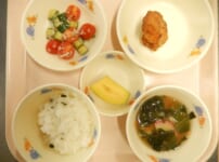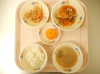 本日の給食は… *わかめごはん *鶏のから揚げ 〈鶏もも肉・しょうが・にんにく・醤油・みりん・塩・片栗粉・米粉・なたね油〉 *ミニトマトとしらすのサラダ 〈ミニトマト・きゅうり・しらす・ごま油・醤油・中華だしの素・ごま〉 *具沢山みそ汁 〈ほうれん草・人参・舞茸・かまぼこ・白みそ・煮干しだし汁〉 *バナナ 本日のおやつは… ◆牛乳 ◆しらすチーズガレット 〈じゃが芋・しらす・とろけるチーズ・片栗粉・塩・なたね油〉 ◆パイン 本日のもぐもぐ期離乳食は… 〇粥 〇鶏肉の煮物 〈鶏肉・人参・舞茸・醤油・三温糖〉 ...