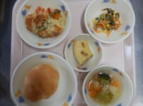 本日の給食は・・・ *ロールパン *チキングラタン 〈鶏肉・マカロニ・玉ねぎ・かぼちゃ・しめじ・赤ピーマン・バター・米粉・牛乳・塩・洋風だしの素・パン粉・とろけるチーズ・パセリ粉・スキムミルク〉 *小松菜とツナのサラダ 〈小松菜・にんじん・コーン・ツナ・オリーブ油・塩・酢・三温糖〉 *ポトフ 〈ブロッコリー・キャベツ・にんじん・ウインナーソーセージ・じゃがいも・洋風だしの素・塩〉 *バナナ 本日のおやつは・・・ ◆麦茶 ◆みそ焼きおにぎり 〈米・白みそ・三温糖・みりん・ごま油・ごま〉 本日のもぐもぐ期の給 ...