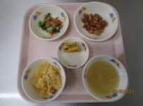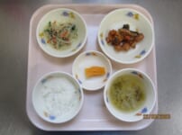 本日の給食は… *コッペパン *メンチカツ <豚ひき肉・キャベツ・高野豆腐・片栗粉・酒・塩・こしょう・マヨドレ・パン粉・油・ソース・ケチャップ・牛乳・水> *ジャーマンポテト <じゃがいも・玉ねぎ・ウインナー・バター・塩・こしょう・おろしにんにく・コンソメ> *ミネストローネ <しめじ・玉ねぎ・マカロニ・おろしにんにく・オリーブ油・トマトピューレ・コンソメ・塩・砂糖> *パイン缶 本日のおやつは… ◆牛乳 ◆焼きおにぎり <米・しょうゆ・かつおだし・ごま油> 本日のカミカミ期の離乳食は… 〇コッペパン 〇 ...