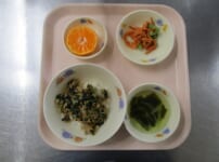 本日の給食は… *きのこのクリームドリア <米・コーン・バター・ケチャップ・しいたけ・エリンギ・玉ねぎ・豚ひき肉・牛乳・生クリーム・バター・スキムミルク・小麦粉・コンソメ・酒・塩・こしょう・チーズ> *野菜のオーブン焼き <人参・じゃがいも・ミニトマト・しめじ・ブロッコリー・塩・こしょう・オリーブ油・おろしにんにく> *オニオンスープ <玉ねぎ・バター・水・塩・コンソメ・パセリ> *フルーツゼリー <みかん缶・パイン缶・水・砂糖・寒天> 本日のおやつは… ◆牛乳 ◆お麩きな粉 <麩・バター・きな粉・砂糖・ ...