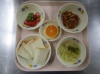 本日の給食は… *焼き鳥丼 <ごはん・鶏肉・ねぎ・砂糖・しょうゆ・みりん・片栗粉・水・のり・ほうれん草> *だいこんサラダ <大根・人参・きゅうり・ツナ・しょうゆ・砂糖・酢・ごま油> *みそ汁(油揚げ・しめじ・キャベツ) *秋のプリンアラモード <かぼちゃ・牛乳・砂糖・ゼラチン・生クリーム・砂糖・生クリーム・ココアパウダー・水> 本日のおやつは… ◆牛乳 ◆チーズドッグ <ホットケーキミックス・絹ごし豆腐・チーズ・油・グラニュー糖・ケチャップ> 本日のごっくん期の離乳食は… ●つぶし粥 ●ペースト <ほう ...