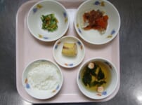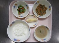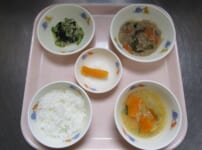 本日の給食は… *ごはん *かれいのケチャップあんかけ <かれい・塩・こしょう・片栗粉・油・玉葱・人参・ピーマン・油・砂糖・酢・しょうゆ・ケチャップ・片栗粉> *キャベツの昆布和え <キャベツ・きゅうり・人参・塩昆布・塩・みりん> *すまし汁(豆麩・小松菜) *バナナ 本日のおやつは… ◆牛乳 ◆クラッカーサンド <クラッカー・きな粉・豆乳・砂糖・塩> 本日のかみかみ期の離乳食は… ★軟飯 ★高野豆腐のあんかけ <高野豆腐・玉葱・人参・ピーマン・しょうゆ・砂糖・片栗粉> ★キャベツの和え物 <キャベツ・人 ...