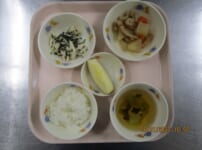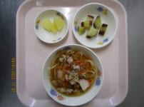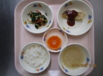 本日の給食は… *ごはん *鱈のオーロラ揚げ <鱈・しょうが・塩・片栗粉・小麦粉・油・ケチャップ・ソース・みそ・砂糖・水> *三色のり和え <ほうれん草・白菜・人参・のり・しょうゆ> *みそ汁(もやし・油揚げ) *みかん 本日のおやつは… ◆牛乳 ◆黒糖蒸しパン <小麦粉・ベーキングパウダー・ホットケーキミックス・黒砂糖・水・油・白ごま> 本日のかみかみ期の離乳食は… ▲軟飯 ▲鱈の揚げ物の湯通し <鱈・片栗粉・油> ▲三色のり和え <ほうれん草・人参・白菜・のり> ▲みそ汁(もやし・油揚げ) 本日のかみ ...
