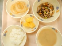 本日の給食は… *ご飯 *炒り豆腐 〈木綿豆腐・鶏むね肉・干し椎茸・人参・ひじき・玉ねぎ・たけのこ水煮・枝豆・かつお昆布だし汁・しょうゆ・みりん・酒・三温糖・油〉 *オニオンリング 〈玉ねぎ・小麦粉・米粉・ベーキングパウダー・マヨドレ・洋風だしの素・中華だしの素〉 *みそ汁 〈さつまいも・玉ねぎ・白みそ・煮干だし汁〉 *パイン 本日のおやつは… ◆牛乳 ◆きびだんご 〈白玉粉・絹ごし豆腐・スキムミルク・三温糖・きな粉・塩〉 (0、1歳児はご飯での提供となります) かみかみ期給食は… 〇ご飯 〇炒り豆腐 〈 ...