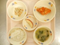 本日の給食は… *ごはん *かれいのケチャップ和え 〈かれい・塩・片栗粉・小麦粉・油・ケチャップ・しょうゆ・三温糖・みりん〉 *ツナマヨサラダ 〈切り干し大根・にんじん・きゅうり・ツナ・マヨドレ・しょうゆ・三温糖・ごま〉 *みそ汁(あおさ・ちくわ・小松菜) *りんご 本日のおやつは… ◆牛乳 ◆ハスカップゼリー 〈ハスカップ濃縮果汁・三温糖・粉かんてん・水〉 ◆クラッカー 本日のもぐもぐ期の離乳食は… 〇軟飯 〇カレイの煮物 〇スティックにんじん、スティックきゅうり 〇スープ 本日のかみかみ期の離乳食は… ...