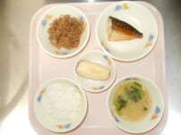 本日の給食は… *ごはん *さばの炒り焼き 〈さば・おろしにんにく・しょうゆ・しょうゆ・酒・みりん・三温糖〉 *きんぴらごぼう 〈ごぼう・にんじん・豚肉・ごま油・三温糖・しょうゆ・みりん・酒・ごま〉 *みそ汁 〈白みそ・煮干しだし汁・キャベツ・えのき・小松菜〉 *りんご 本日のおやつは… ◆牛乳 ◆マシュマロクリスピー 〈脱脂粉乳・バター・マシュマロ・コーンフレーク〉 本日のもぐもぐ期の離乳食は… 〇おかゆ 〇豚肉の煮物 〈豚肉・しょうゆ・三温糖〉 〇小松菜の和え物 〈小松菜・にんじん・しょうゆ〉 〇スー ...