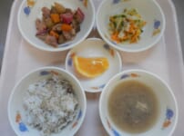 本日の給食は・・・ *ごはん *さばのごまみりん焼き 〈さば・三温糖・醤油・酒・みりん・生姜・ごま〉 *豚肉となすの味噌炒め 〈豚もも肉・なす・ピーマン・赤ピーマン・にんじん・ごま油・白みそ・みりん・三温糖・醬油・酒〉 *けんちん汁 〈かつお昆布だし汁・木綿豆腐・にんじん・大根・白菜・小松菜・ごぼう・じゃがいも・ごま油・醤油・酒・塩〉 *りんご 本日のおやつは・・・ ◆牛乳 ◆お好み焼き 〈長芋・桜えび・キャベツ・豚もも肉・米粉・片栗粉・ベーキングパウダー・ほんだし・お好み焼きソース・マヨドレ・青のり・か ...