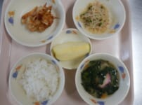 本日の給食は・・・ *ねぎ塩豚丼 〈米・豚肉・玉ねぎ・にんにく・小松菜・酒・ごま油・ねぎ・塩・レモン果汁・中華だしの素〉 *きゅうりとわかめの酢の物 〈きゅうり・わかめ・醤油・酢・三温糖・塩・ごま油〉 *みそ汁 〈白みそ・煮干しだし汁・さつまいも・玉ねぎ・しめじ〉 *バナナ 本日のおやつは・・・ ◆牛乳 ◆あんぱん 〈強力粉・ドライイースト・三温糖・塩・牛乳・無塩バター・こしあん・黒ごま〉 本日のもぐもぐ期の給食は・・・ *軟飯 *豚肉の煮物 〈豚肉・玉ねぎ・小松菜・醤油・三温糖・塩〉 *ふかしさつまいも ...