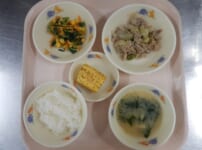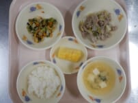 本日の給食は… *ごはん *ほっけフライ 〈ほっけ・塩・米粉・パン粉・なたね油・中濃ソース・三温糖〉 *小松菜と揚げの煮びたし 〈小松菜・人参・えのき・油揚げ・かつお昆布だし汁・醤油・酒・みりん・三温糖〉 *豚汁 〈豚もも肉・大根・人参・玉ねぎ・ごぼう・じゃが芋・ねぎ・いたこんにゃく・木綿豆腐・かつお昆布だし汁・白みそ・ごま油〉 *すいか 本日のおやつは… ◆牛乳 ◆かぼちゃミルク餅 〈南瓜・牛乳・片栗粉・三温糖〉 本日のかみかみ期離乳食は… 〇軟飯 〇ほっけフライ湯通し 〈ほっけ・塩・米粉・パン粉・なた ...