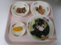 本日の給食は… *あごだしうどん <うどん・あごだし汁・鶏肉・人参・ねぎ・ほうれん草・油揚げ・かまぼこ・白だし・みりん・酒・塩> *ひじきのサラダ <ひじき・大根・人参・コーン・ツナ・しょうゆ・砂糖・酢・油> *甘辛南瓜 <かぼちゃ・片栗粉・油・酒・砂糖・しょうゆ・ごま> *オレンジ 本日のおやつは… ◆牛乳 ◆さつまいもスティック <さつまいも・油・砂糖・塩> 本日のごっくん期の離乳食は… 〇つぶしうどん 〇すりつぶし <高野豆腐> 〇ぺースト <さつまいも・南瓜> 〇スープ 本日のモグモグ期の離乳食は ...