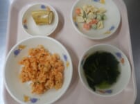 本日の給食は… *パエリア <米・めんつゆ・酒・みりん・水・トマトピューレ・えび・玉葱・あさり・いか・にんにく・オリーブ油・コンソメ> *マカロニサラダ <マカロニ・人参・きゅうり・マヨドレ・醤油・塩・三温糖> *コンソメスープ(コーン・小松菜) *バナナ 本日のおやつは… ◆牛乳 ◆さつまいものパウンドケーキ <さつまいも・三温糖・ヨーグルト・バター・ホットケーキミックス> 本日のごっくん期の離乳食は… 〇つぶし粥 〇高野豆腐 〇小松菜 〇人参 〇スープ 本日のかみかみ期の離乳食は… 〇しらすごはん < ...