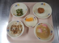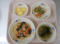 本日の給食は… *あんかけやきそば <焼きそば麺・油・豚肉・えび・白菜・玉葱・人参・たけのこ・もやし・きくらげ・水・醤油・オイスターソース・三温糖・鶏ガラ・ごま油> *ちくわときゅうりのナムル <ちくわ・きゅうり・人参・醤油・鶏ガラ・塩・ごま・ごま油> *えのきの中華スープ <えのき・ねぎ・わかめ・水・ごま油・鶏ガラ・塩> *パイン 本日のおやつは… ◆牛乳 ◆きな粉おはぎ <米・こしあん・きな粉・三温糖・塩> 本日のごっくん期の離乳食は… 〇つぶし粥 〇しらす 〇きゅうり 〇白菜 〇スープ 本日のかみか ...