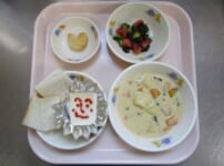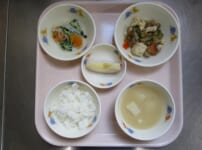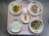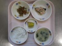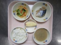 本日の給食は・・・ *ごはん *さばのしょうが煮 〈さば・しょうが・しょうゆ・砂糖・酒・みりん〉 *スパゲティサラダ 〈スパゲティ・ブロッコリー・コーン・人参・しょうゆ・砂糖・酢・油・ごま油〉 *みそ汁(もやし・ふのり) *りんご 本日のおやつは・・・ ◆牛乳 ◆オレンジ ◆きな粉クッキー 〈薄力粉・きな粉・バター・砂糖・粉砂糖〉 本日のカミカミ期離乳食は・・・ ■軟飯 ■さばのしょうが煮 〈さば・生姜・しょうゆ・砂糖〉 ■スパゲティサラダ 〈スパゲティ・ブロッコリー・人参・塩〉 ■みそ汁(もやし) ■ ...
