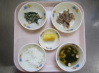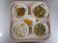 本日の給食は・・・ *梅さばごはん 〈ごはん・サバ缶・ひじき・うめびしお・醤油・みりん・酒・三温糖・ごま〉 *ちくわと長いもの磯辺揚げ 〈ちくわ・長いも・片栗粉・小麦粉・水・青のり・塩・油〉 *きんぴらごぼう 〈ごぼう・人参・豚肉・ごま油・醤油・みりん・三温糖・酒・ごま〉 *みそ汁(なす・ねぎ) *パイン 本日のおやつは・・・ ◆牛乳 ◆みるくくずもち 〈牛乳・三温糖・片栗粉・きな粉・三温糖・塩〉 本日のモグモグ期離乳食は・・・ 〇粥 〇野菜の煮物 〈人参・南瓜・ブロッコリー〉 〇しらす 〇スープ 本日の ...
