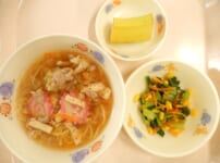 本日の給食は・・・ *海老とたけのこのあんかけ丼 〈ごはん・鶏肉・えび・白菜・しめじ・玉ねぎ・人参・たけのこ・ きくらげ・しょうが・にんにく・とりがら・醤油・酒・みりん・三温糖・ごま油・片栗粉〉 *小松菜の中華サラダ 〈小松菜・人参・もやし・生揚げ・とりがら・醤油・塩・ごま油〉 *キャベツの中華スープ 〈キャベツ・豚ひき肉・はるさめ・ごま・ごま油・とりがら・塩〉 *パイン 本日のおやつは・・・ ◆牛乳 ◆フルーツ白玉 〈白玉粉・絹豆腐・パイン・みかん缶・黄桃缶・みかん缶汁〉 本日のもぐもぐ期離乳食は・・・ ...