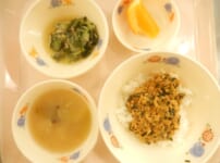 本日の給食は・・・ *ごはん *炒め納豆 〈ひきわり納豆・豚ひき肉・玉ねぎ・人参・ねぎ・にら・醤油・三温糖・みりん・油〉 *きゅうりとわかめの酢の物 〈きゅうり・わかめ・ツナ・醤油・三温糖・塩・酢・ごま油〉 *みそ汁(キャベツ・さつま芋) *オレンジ 本日のおやつは・・・ ◆牛乳 ◆ポンデリング 〈白玉粉・ホットケーキミックス・絹豆腐・ヨーグルト・油・粉糖〉 本日のごっくん期離乳食は・・・ 〇粥 〇絹豆腐 〇さつま芋 〇玉ねぎ 〇スープ 本日のもぐもぐ期離乳食は・・・ 〇粥 〇豚肉の煮物 〈豚ひき肉・玉ね ...
