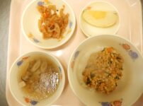 本日の給食は・・・ *ごはん *エビチリ 〈バナメイエビ・鶏もも肉・玉ねぎ・ねぎ・生姜・にんにく・酒・塩・片栗粉・三温糖・醤油・ケチャップ〉 *もやしとハムの中華サラダ 〈もやし・きゅうり・ブロッコリー・ハム・醤油・酢・三温糖・ごま油・すりごま・中華だし〉 *ほうれん草と春雨の中華スープ 〈中華だし・醤油・ごま油・ほうれん草・にんじん・コーン・春雨〉 *パイン 本日のおやつは・・・ ◆牛乳 ◆お好み焼き 〈豚肉・長芋・キャベツ・米粉・片栗粉・ベーキングパウダー・ほんだし・お好み焼きソース・マヨドレ・青のり ...